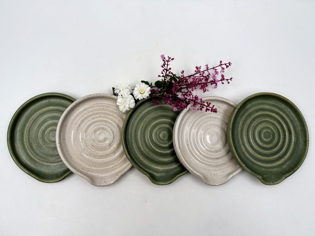 Meet your stovetop’s new best friend — our ceramic spoon rests! Handcrafted with care and a swirl of charm, these sweet little dishes are perfect for catching drips and keeping counters clean. With earthy green and soft white tones, they bring a cosy, rustic touch to any kitchen.